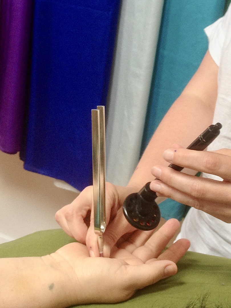 The spine is our central axis of our physical body. This powerful technique, created by Fabien Maman, uses tuning forks & colour lights on the acupuncture points along the spine to harmonize the nervous system, chakras & subtle energy fields. Excellent for releasing back pain & chronic stress in the body often bringing relief where other therapies have been unable to do the trick. Very grounding and calming, it helps regulate sleep problems. On a finer level, Musical Spine also helps release physical/emotional trauma caught up in cellular memories... it frees you from the trauma of the past, helping you to link with your central axis and your direction in life.