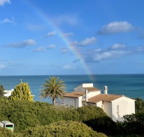 The accommodation is among nature overlooking the sea but only a few minutes’ walk to the centre of the village with its many restaurants and cafes. (Photo taken from balcony of accomodation)